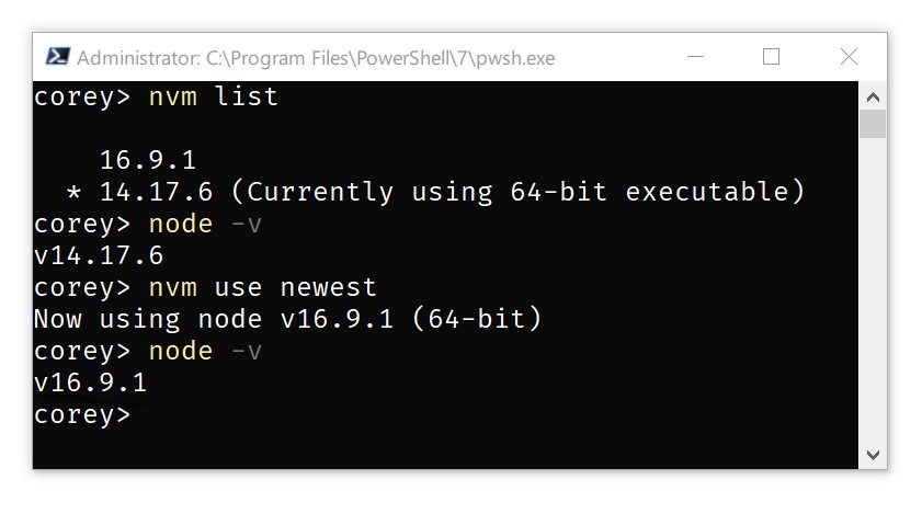 Now using node v16.13.2 (64-bit)